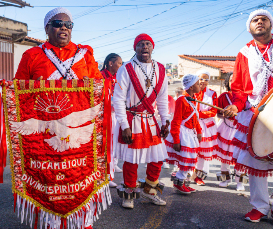 O cortejo reuniu 10 grupos de Congados e Folias de Reis da Grande BH, em uma apresentação repleta de cores, tambores, cânticos e espiritualidade.