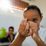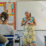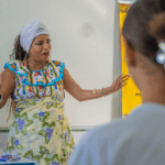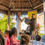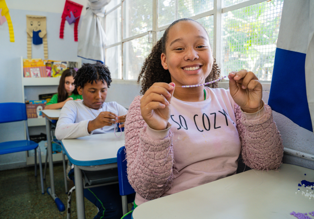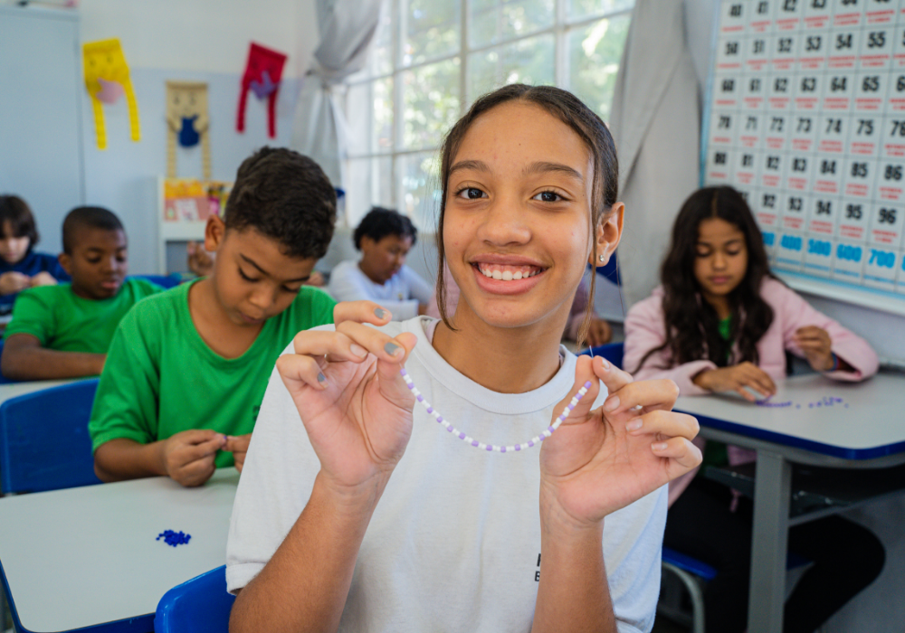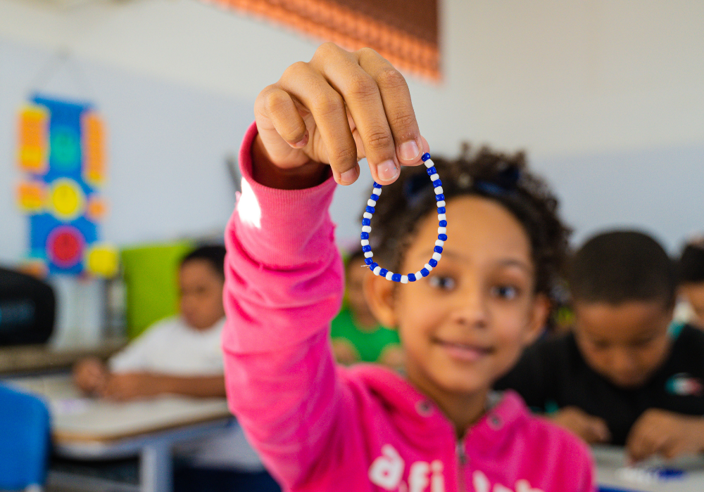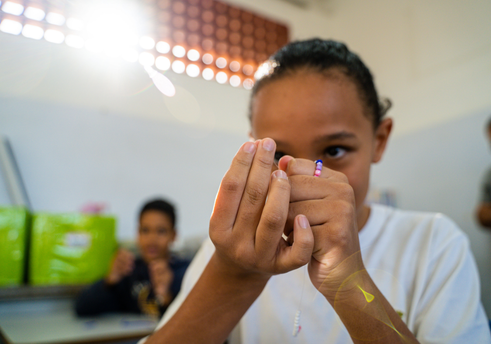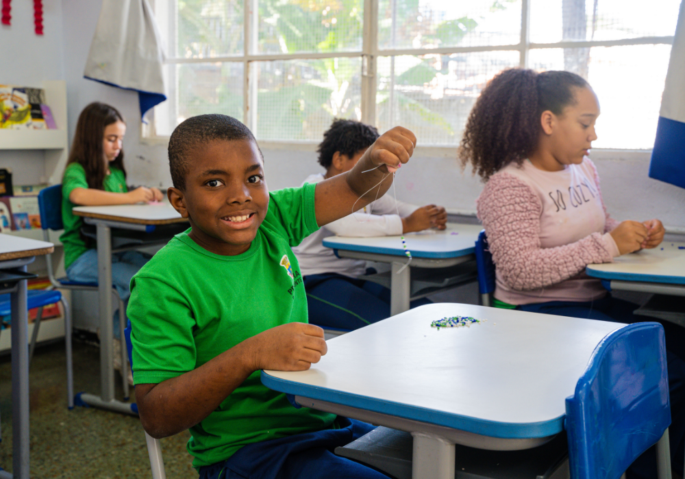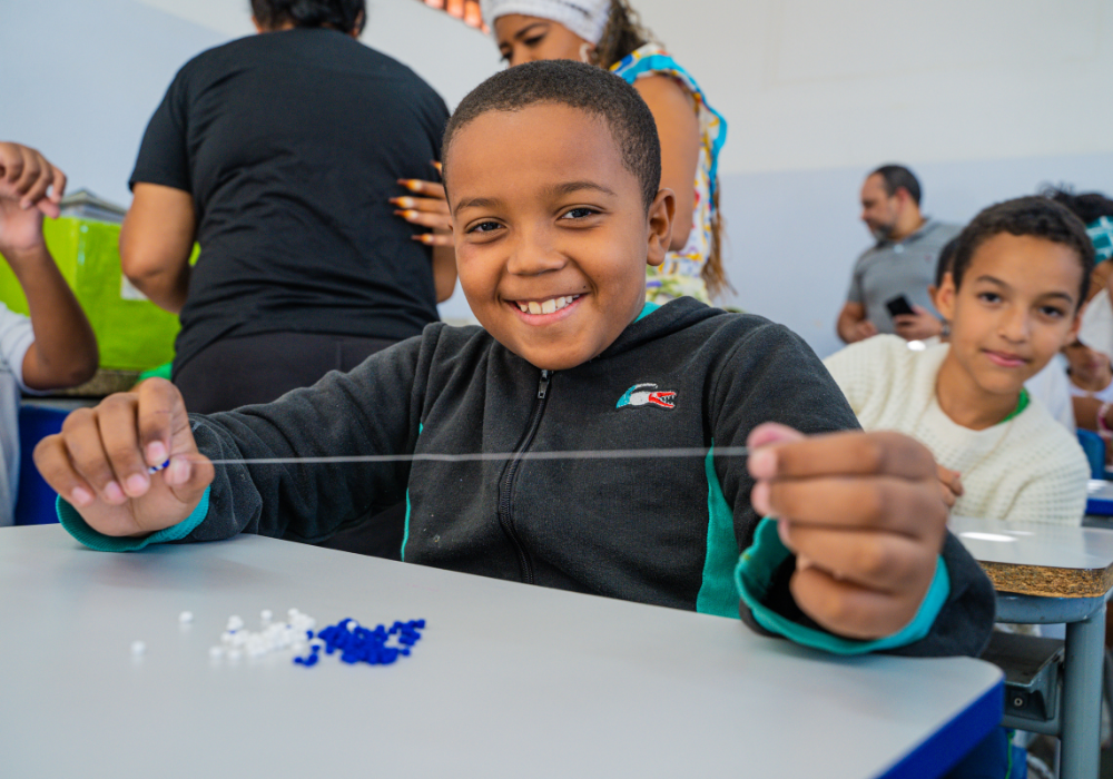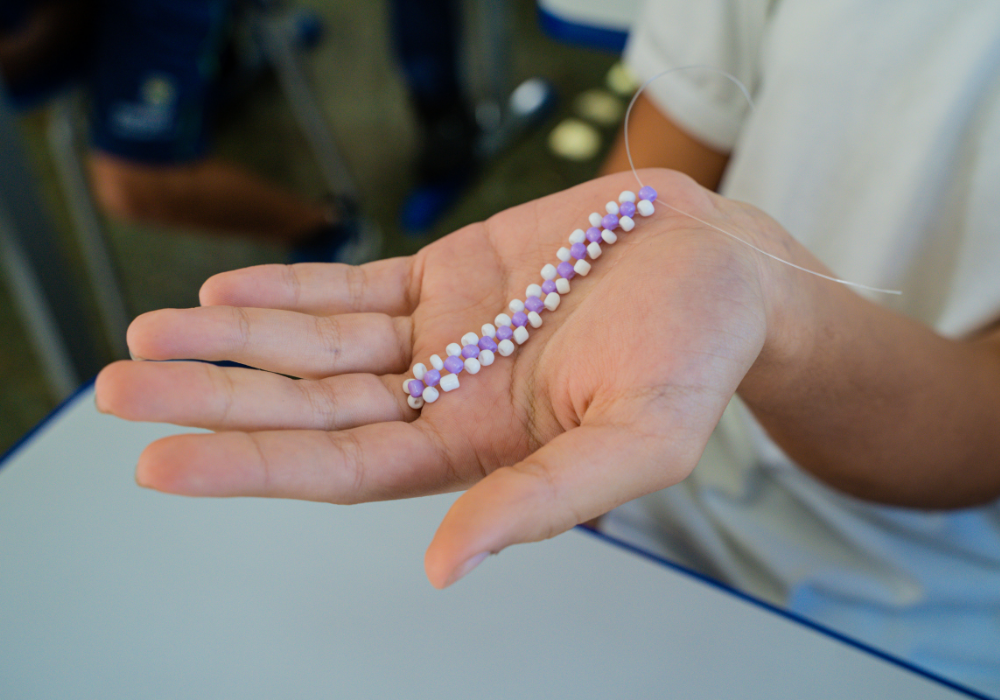 No workshop Memória Ancestral, os alunos vivenciaram a confecção de turbantes e fios de conta e aprenderam sobre seus significados. Uma aula viva de história, beleza e pertencimento.