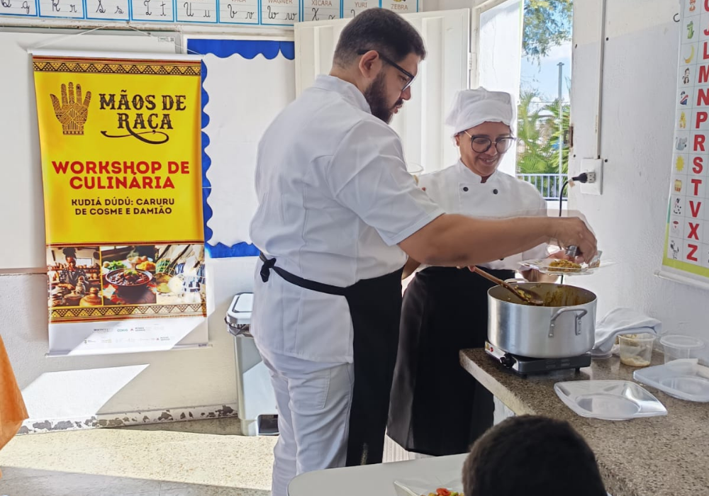 Um mergulho nos sabores ancestrais da culinária afro-brasileira, o workshop levou para os alunos a tradição do Caruru de Cosme e Damião, que vai muito além de um prato saboroso: é uma importante manifestação da cultura que mantém vivos os saberes e sabores ancestrais.