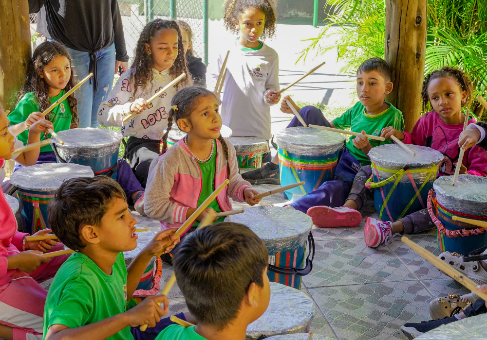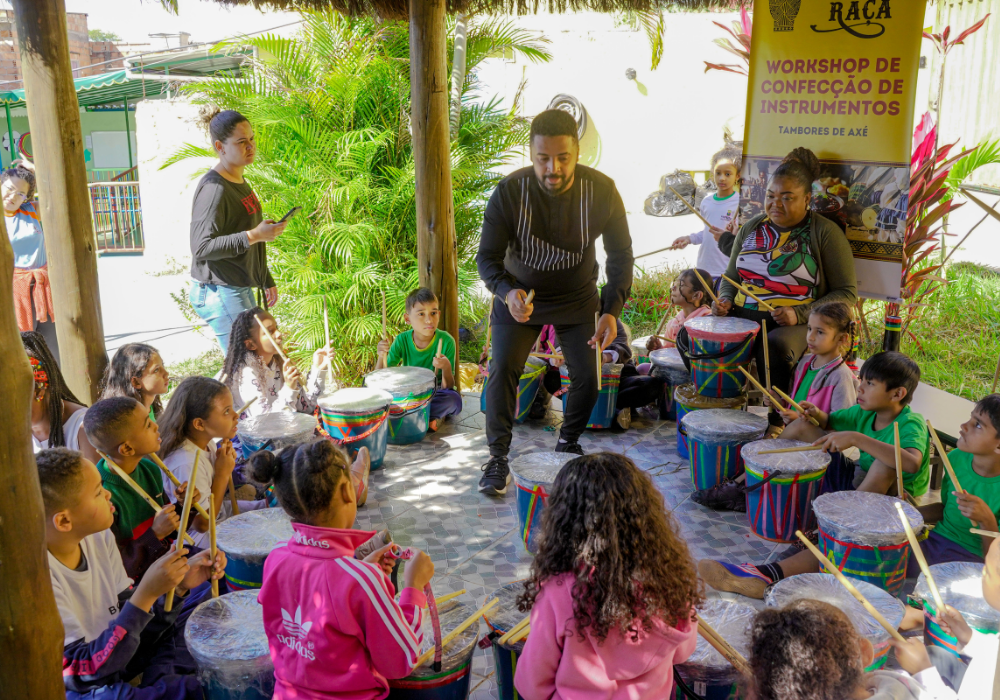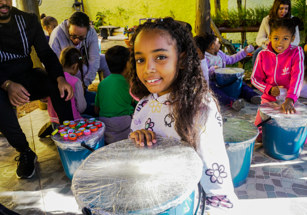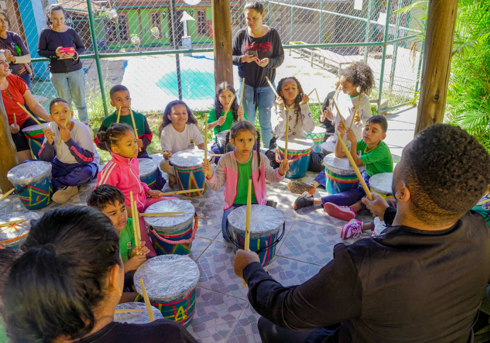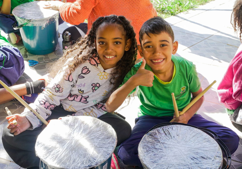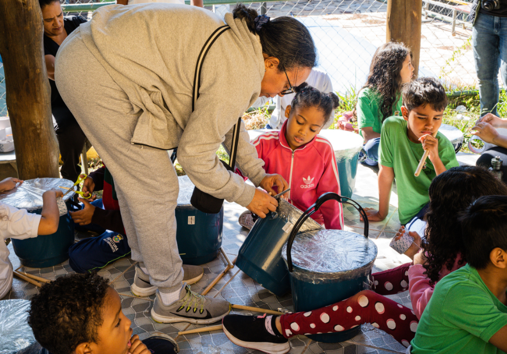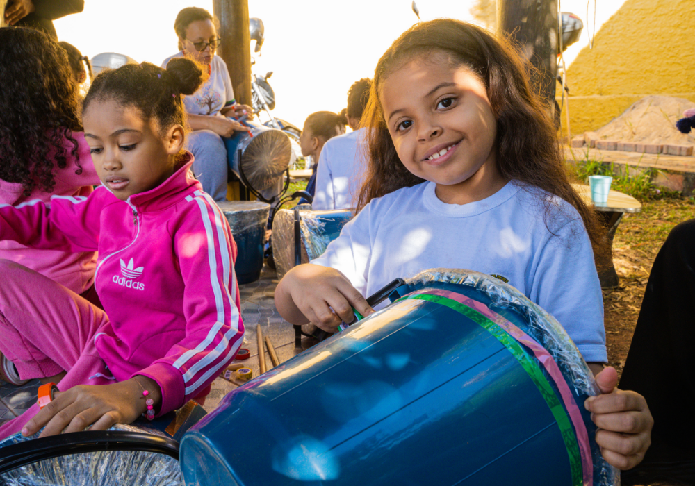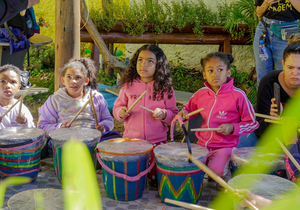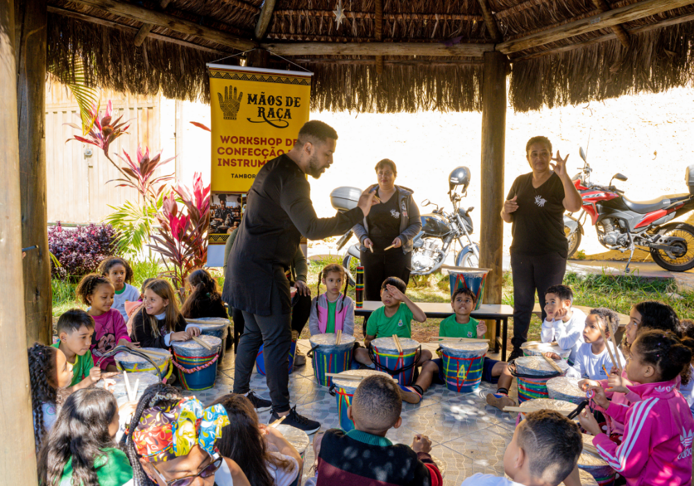 O workshop de confecção de instrumentos proporcionou uma imersão na percussão afro-brasileira. A vivência musical uniu expressão criativa, consciência ambiental e valorização da cultura ancestral através da construção de instrumentos, exploração de ritmos tradicionais e práticas coletivas.
