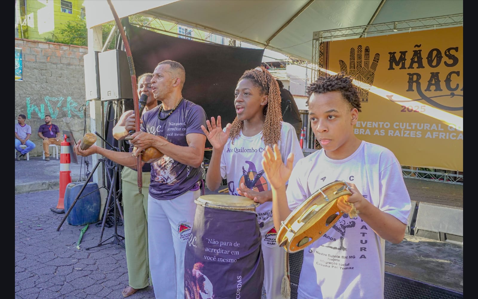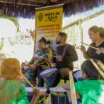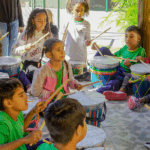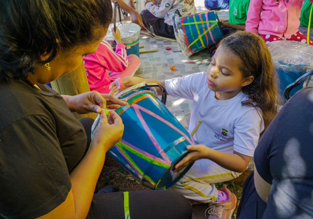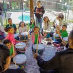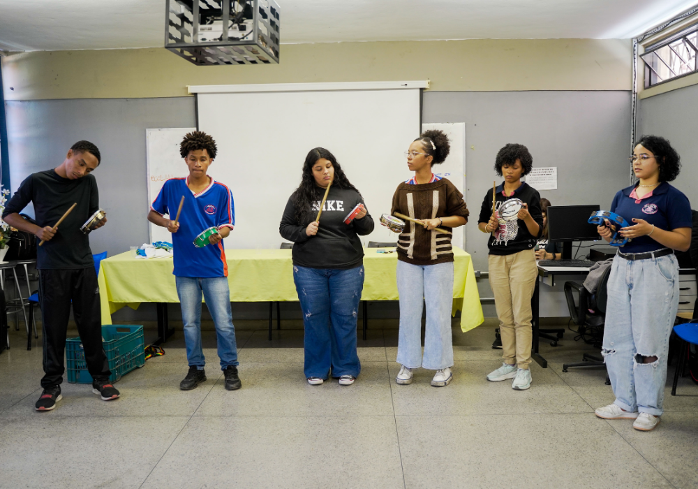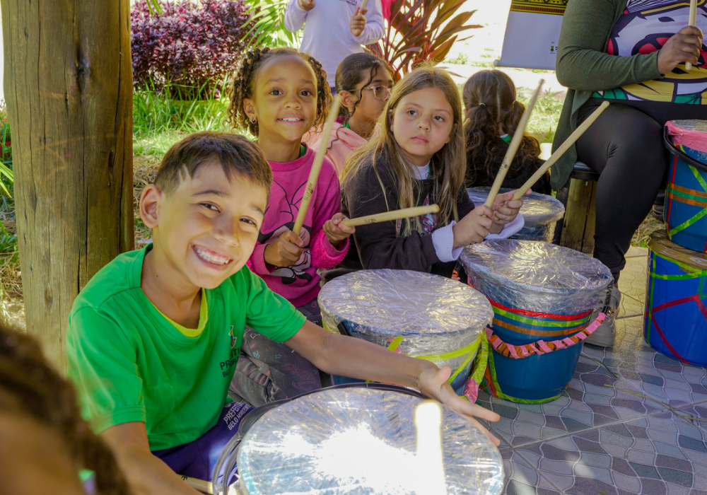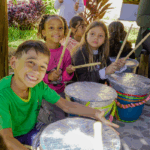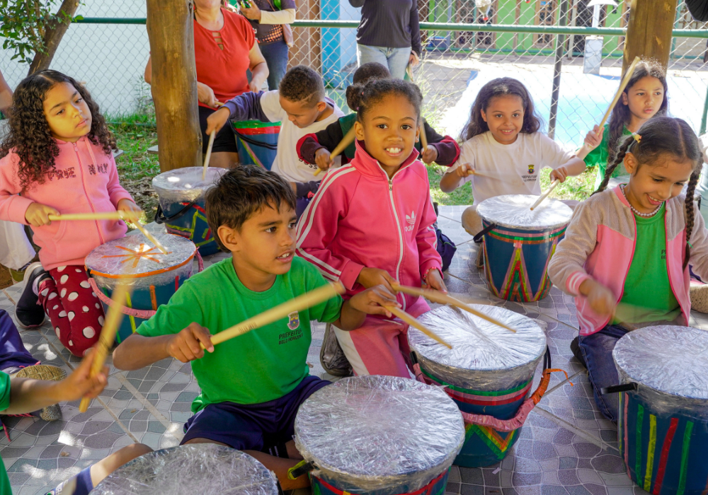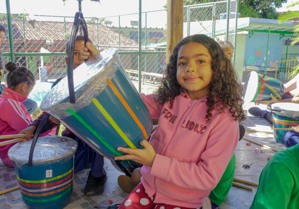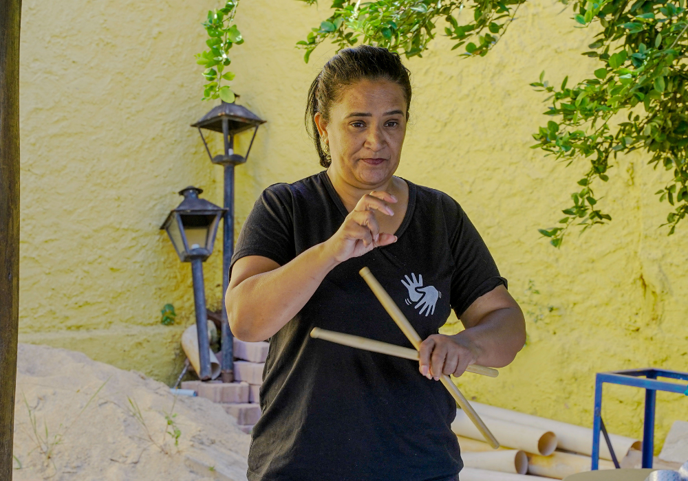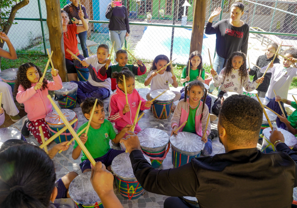 O workshop de confecção de instrumentos proporcionou uma imersão na percussão afro-brasileira. A vivência musical uniu expressão criativa, consciência ambiental e valorização da cultura ancestral através da construção de instrumentos, exploração de ritmos tradicionais e práticas coletivas.