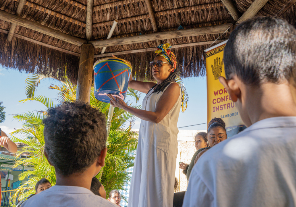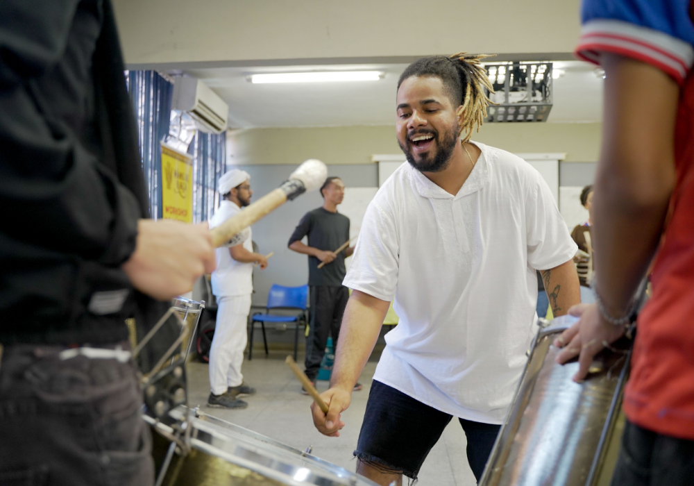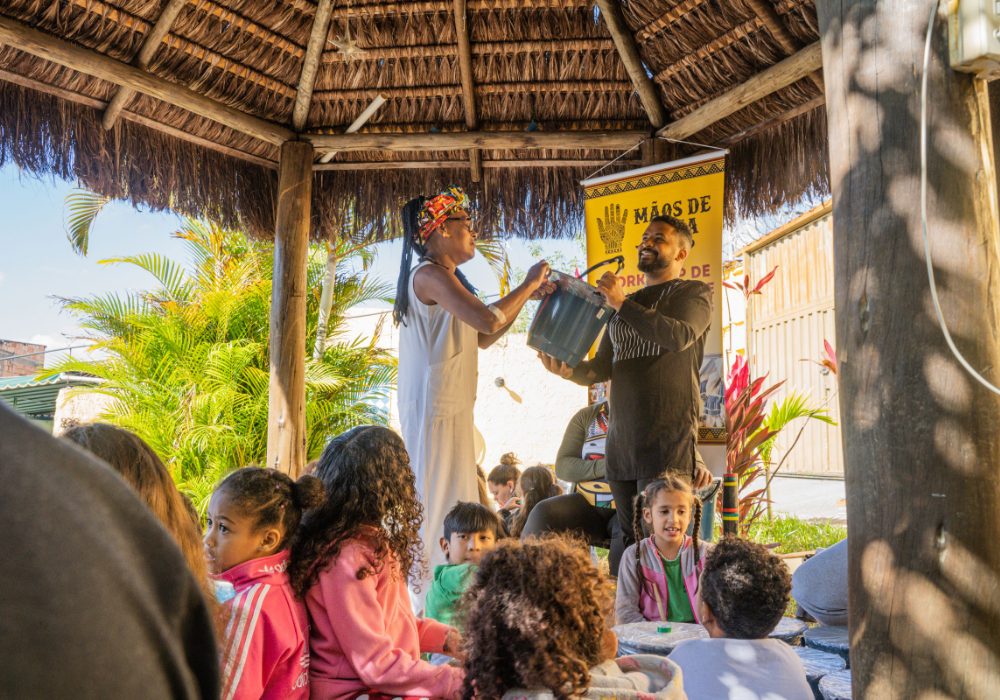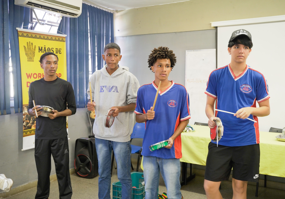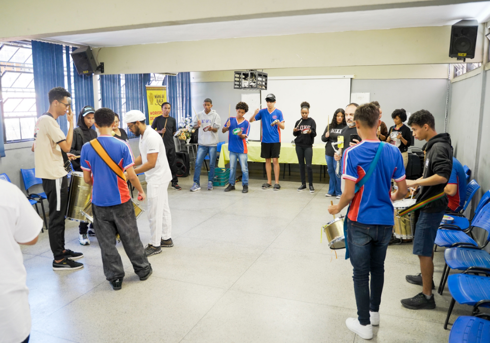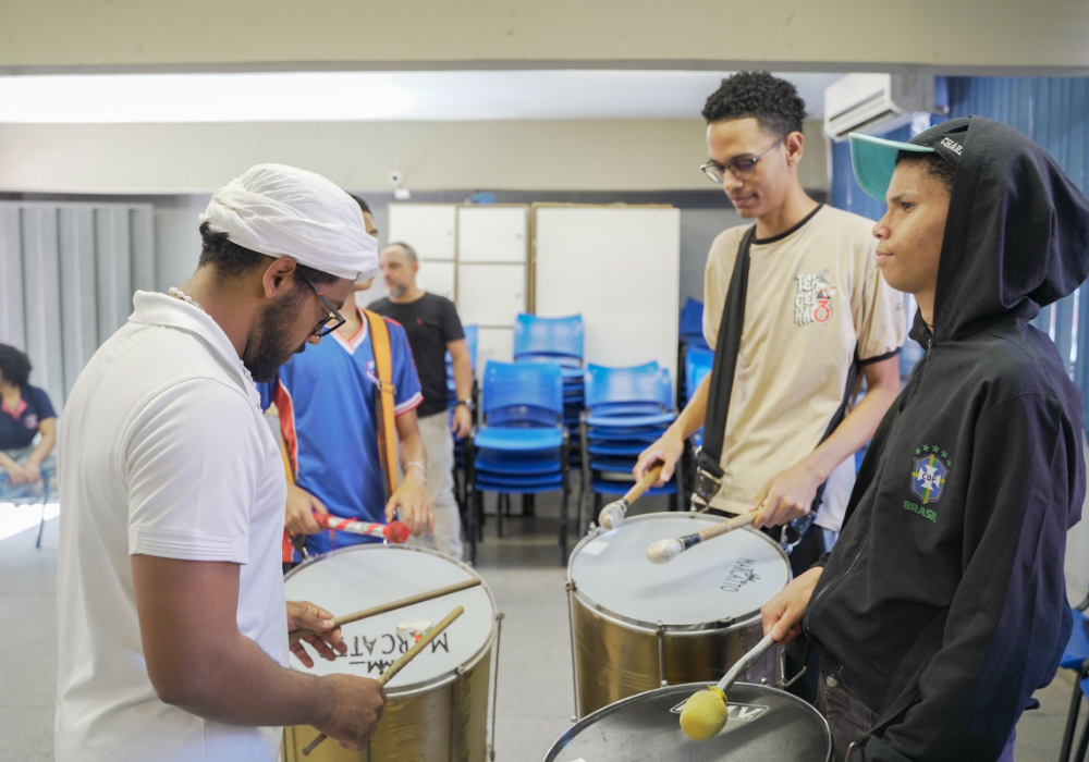Uma imersão emocionante nos ritmos afro-brasileiros e carnavalescos. Através da oralidade, corporeidade e escuta coletiva, os participantes foram convidados a se apropriar dos saberes musicais a partir do corpo e da prática com instrumentos, fortalecendo o vínculo entre ritmo, identidade e pertencimento. Uma celebração da ancestralidade, e do encontro entre o popular e o contemporâneo!