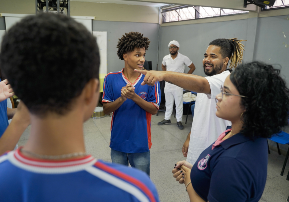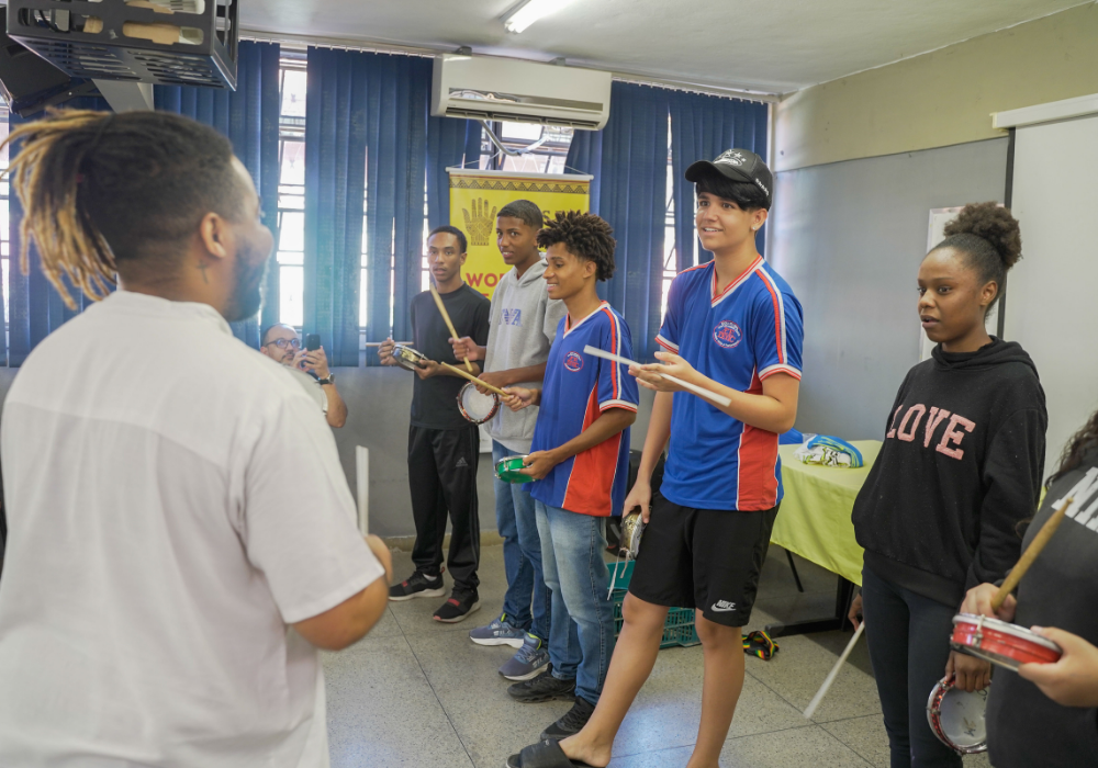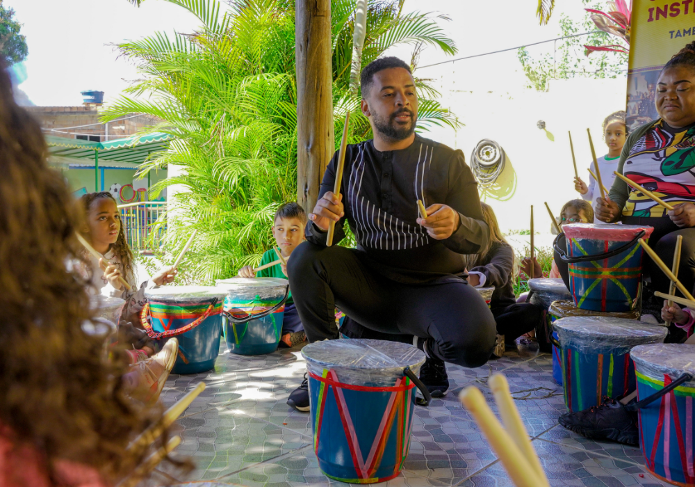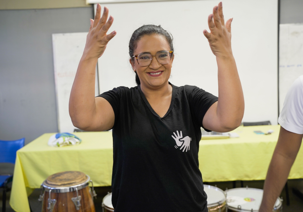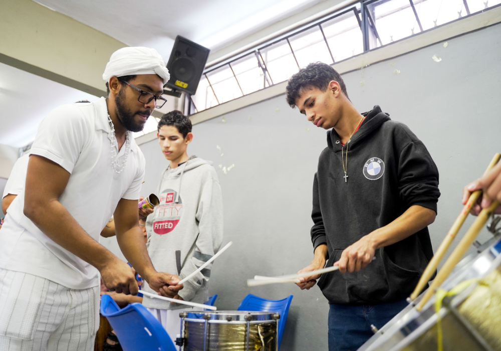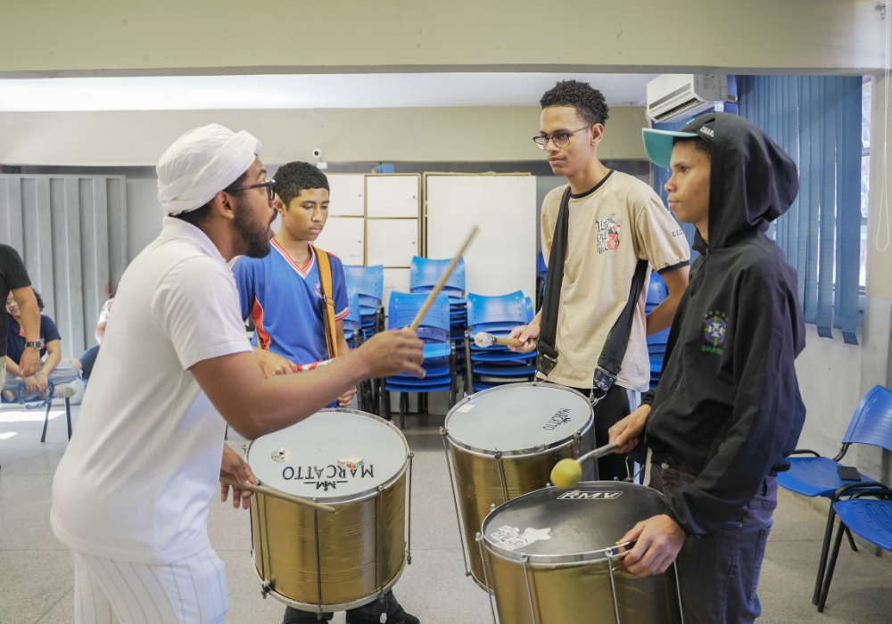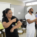Uma imersão emocionante nos ritmos afro-brasileiros e carnavalescos. Através da oralidade, corporeidade e escuta coletiva, os participantes foram convidados a se apropriar dos saberes musicais a partir do corpo e da prática com instrumentos, fortalecendo o vínculo entre ritmo, identidade e pertencimento. Uma celebração da ancestralidade, e do encontro entre o popular e o contemporâneo!