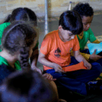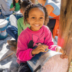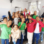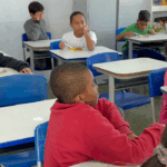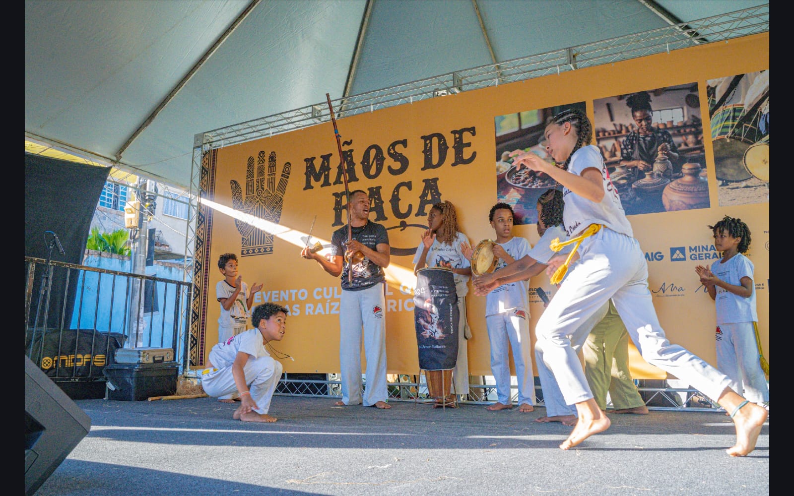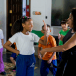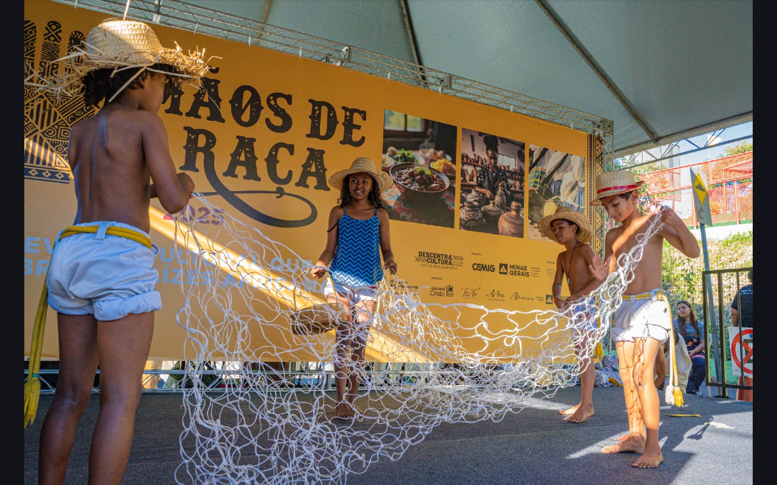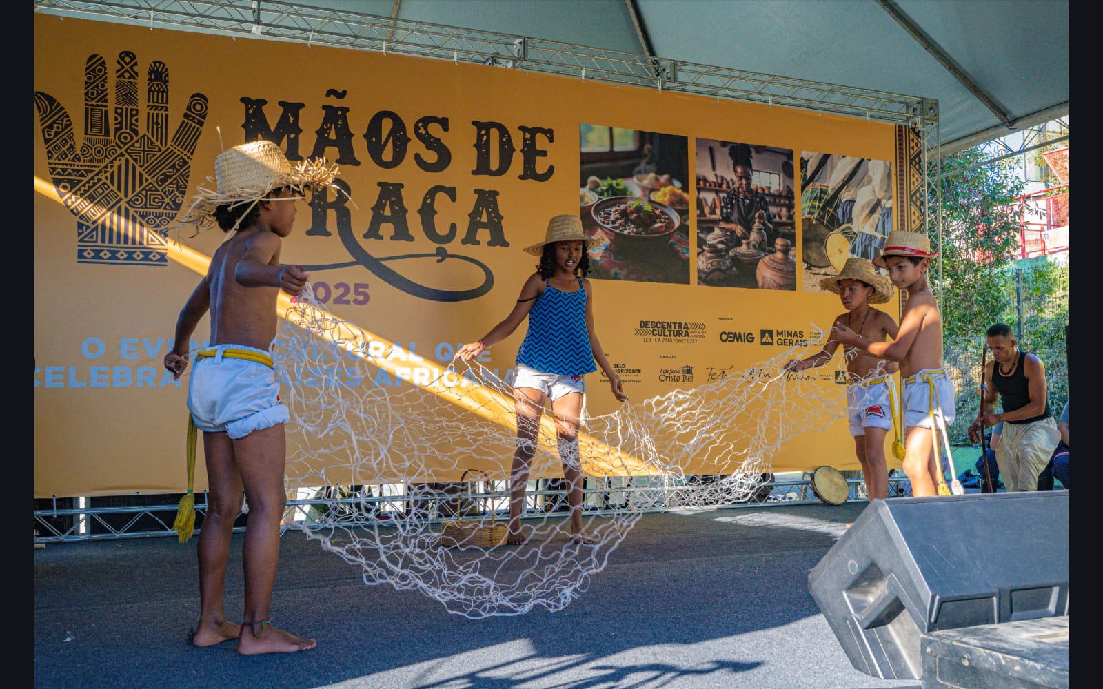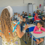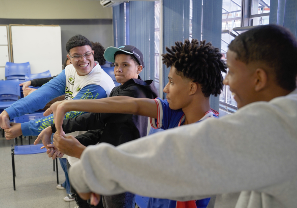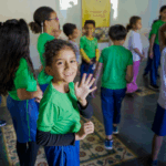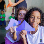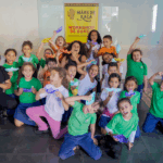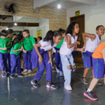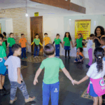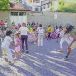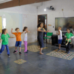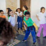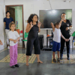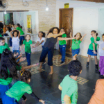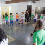 O workshop de dança convidou as crianças a explorarem princípios estimuladores de movimento e criação, onde o vento, o barro, o mar e o rio se tornaram elementos dançantes. e aprenderam mais sobre cultura afro-brasileira.